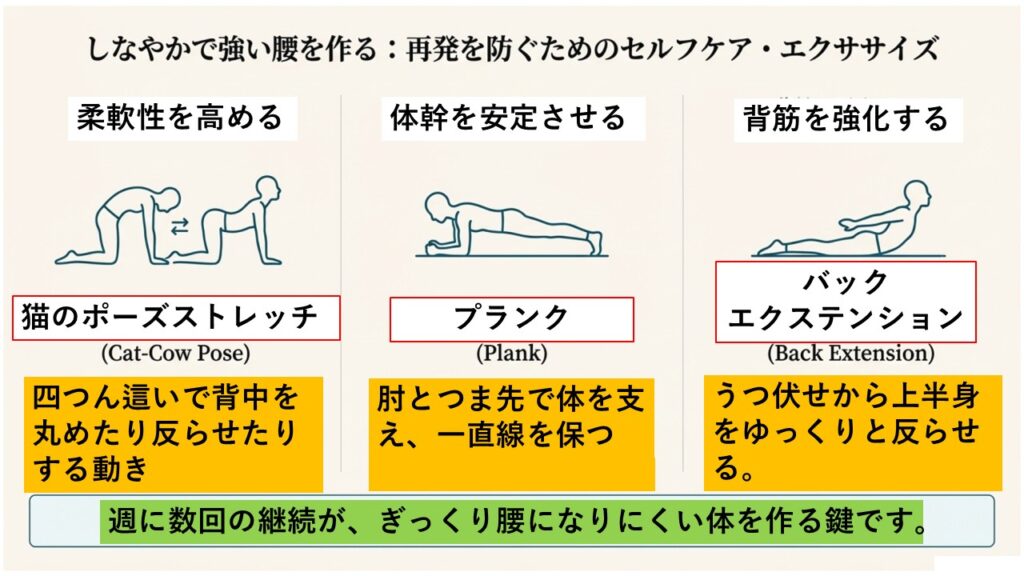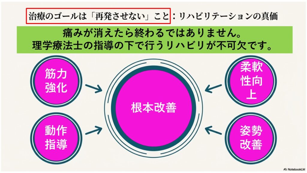 再発させないためには正しい指導の下でのリハビリテーションが重要