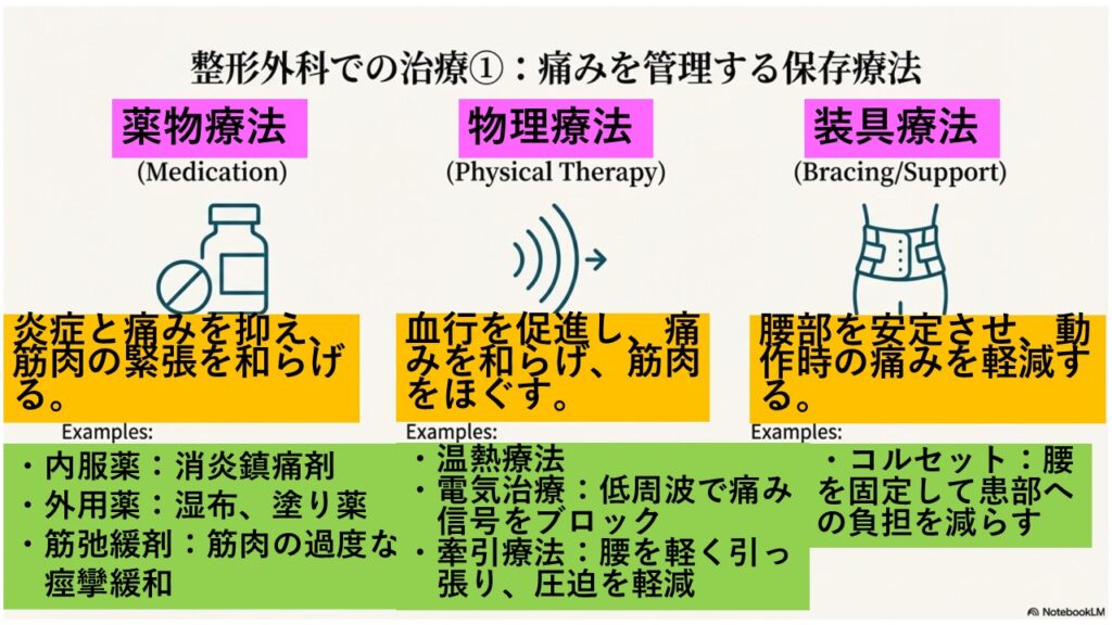 手術療法:保存療法で改善しない、重篤な神経症状がある場合の最終手段。